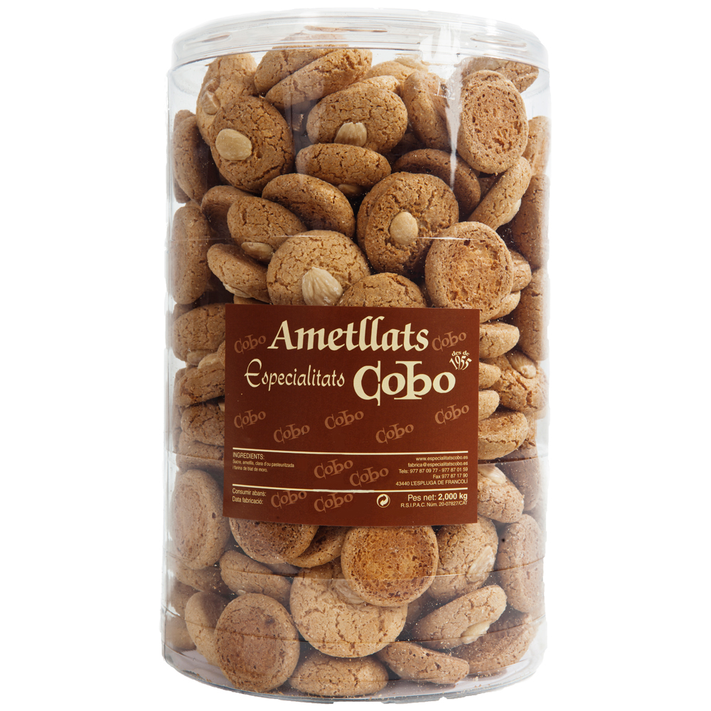 Pot cilíndric amb ametllats, galeta típica de la pastisseria sense farina, amb un 70% d’ametlla